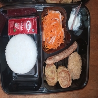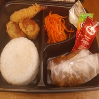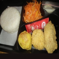 Nasi, salad, ayam teriyaki dan nasi